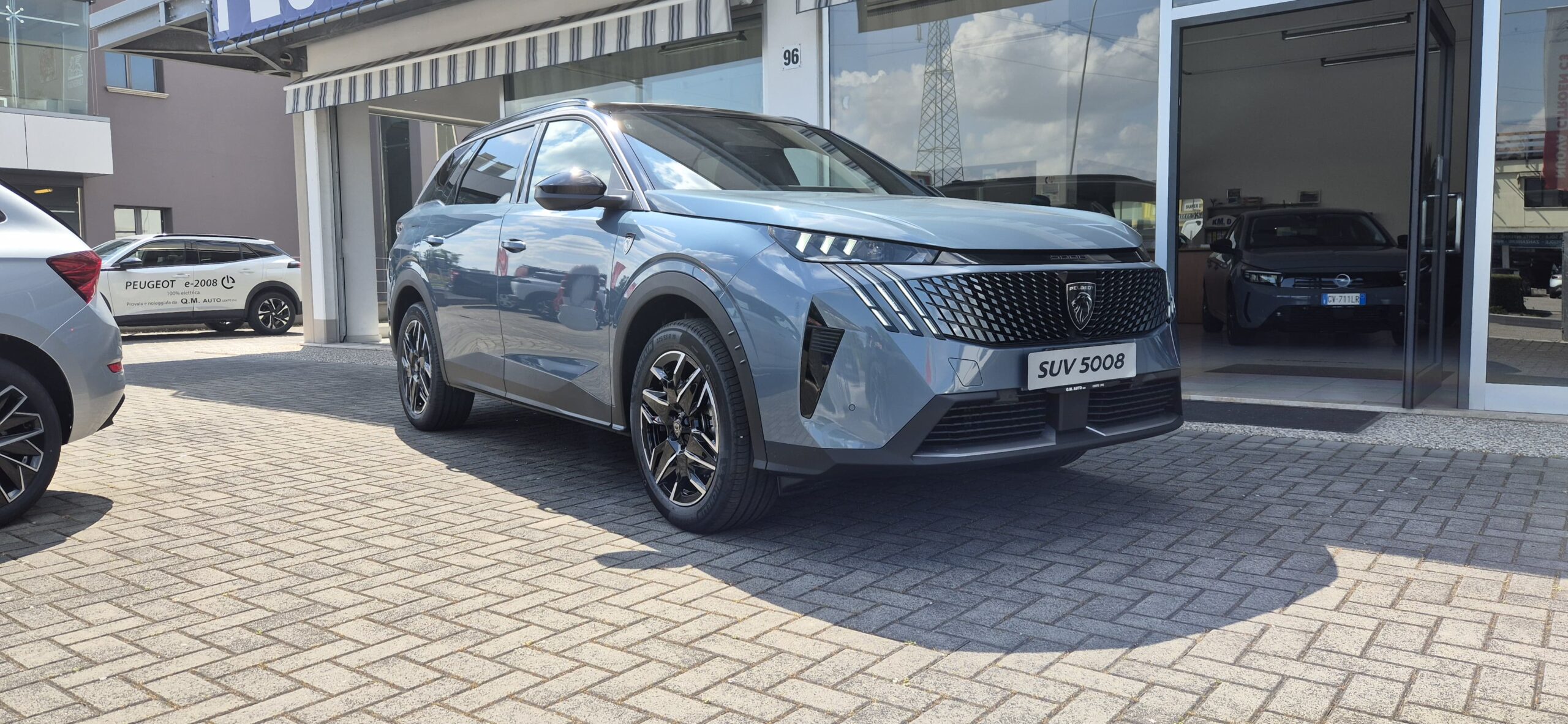 - Fascia nera lucida tra i proiettori anteriori con logo 5008